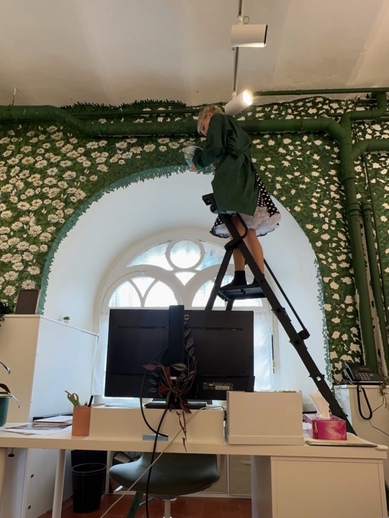 I started the day by spending a little bit of time on my mural, continuing to bring the landscape to life with each brushstroke. It felt grounding to begin with something personal and creative before diving into my first exterior design project: the Lover’s Garden. This project has been in the making for weeks countless visits to flower shops, back-and-forth conversations with the American office, spatial planning, and careful budgeting. It’s been far from straightforward and has tested my ability to adapt, stay patient, and keep momentum.